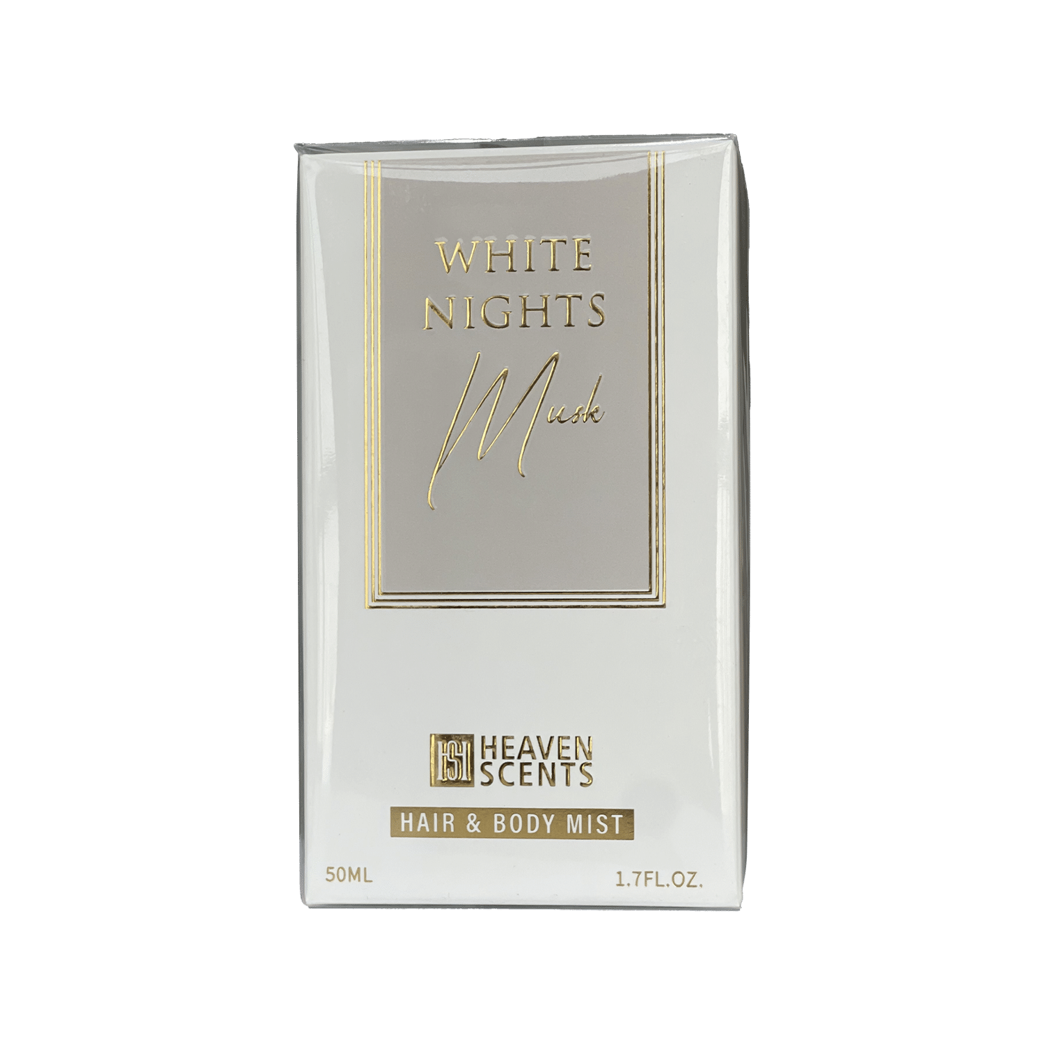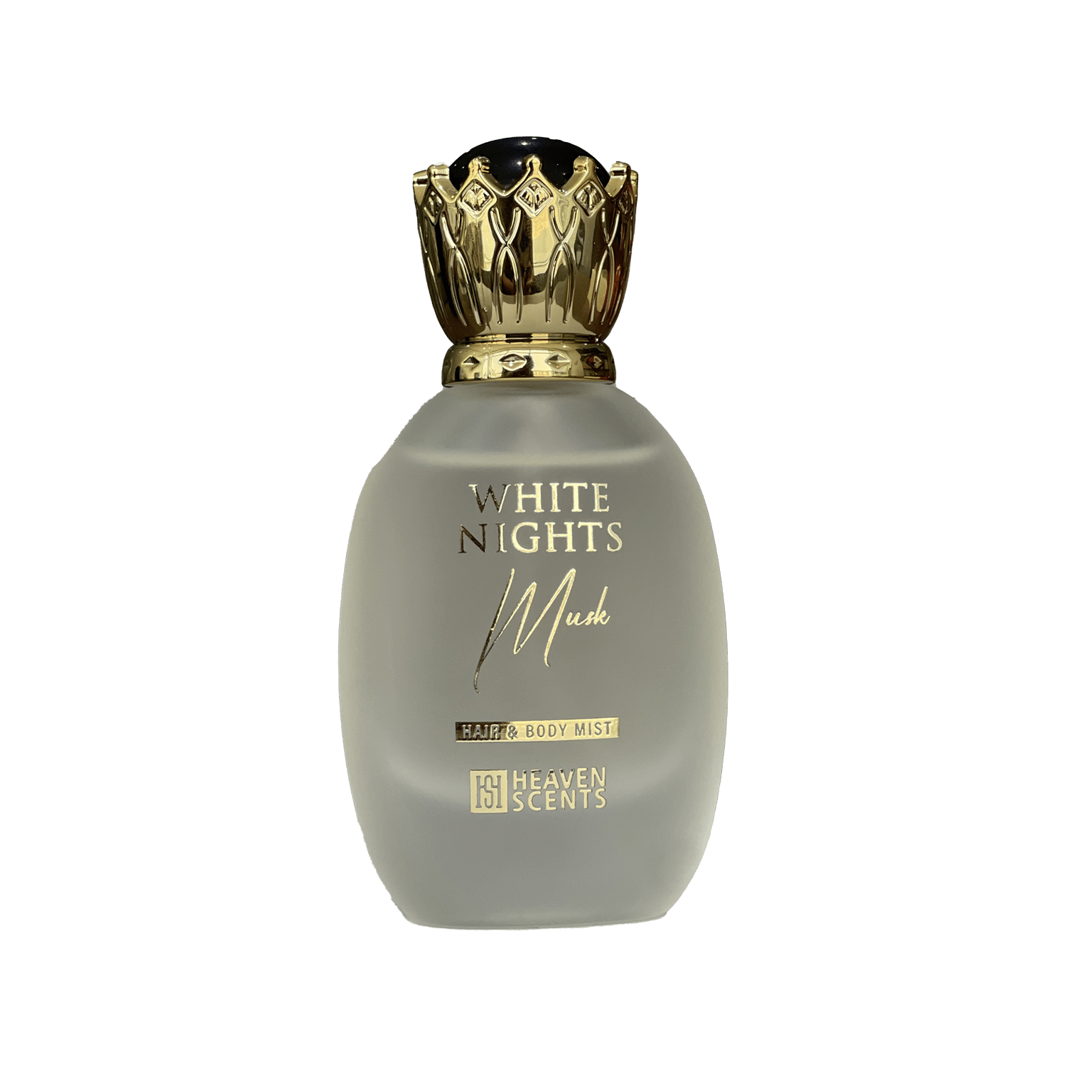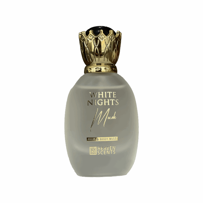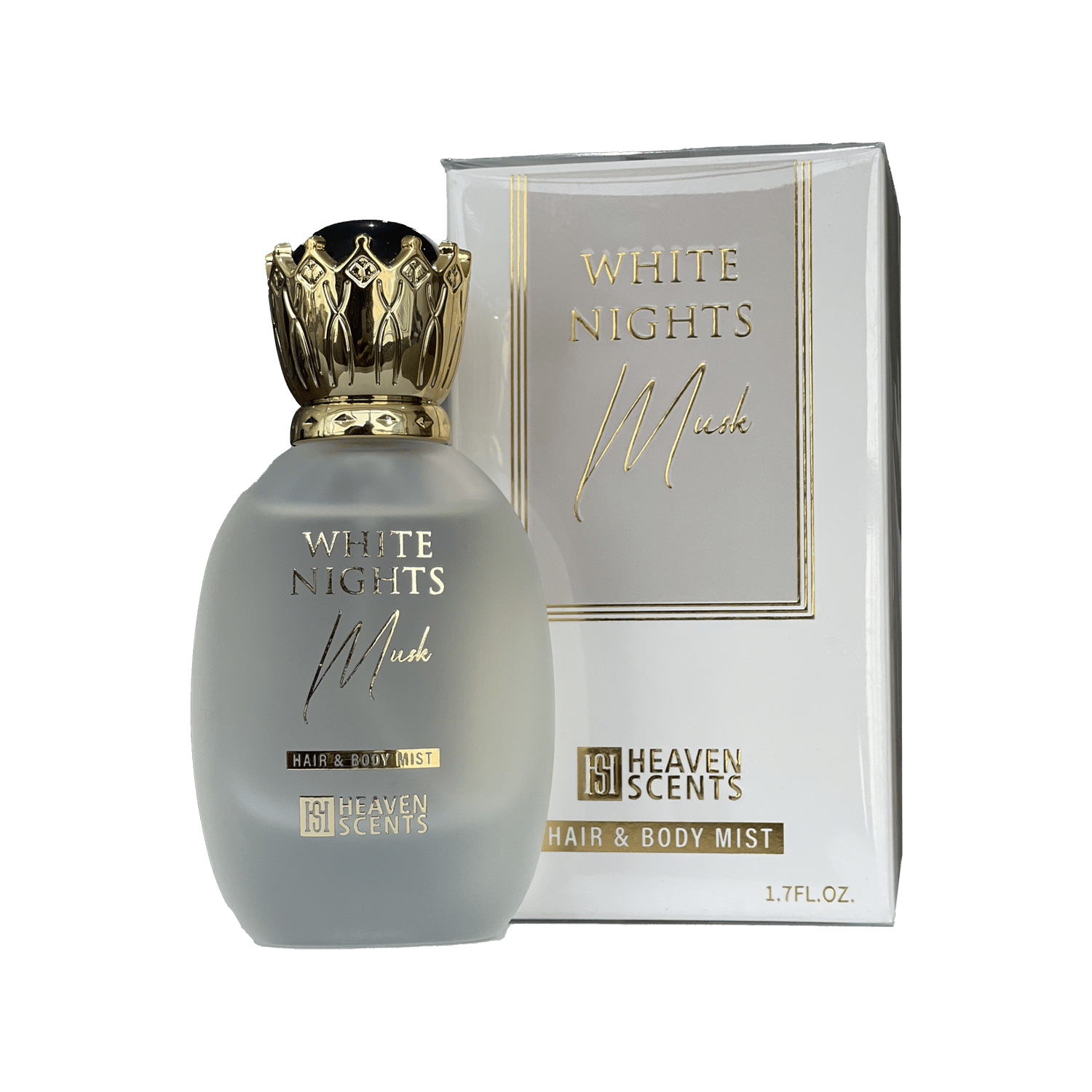 معطر الجسم والشعر وايت نايتس مع المسك من هيفن سنتس هو عطر زهري كهرماني منعش يناسب الجنسين، يتميز بمزيج من ماء جوز الهند، الياسمين، والفانيليا.